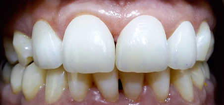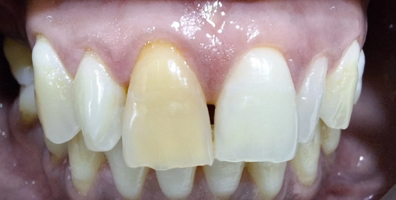 Discolored Tooth Treated with Direct Composite Veneer